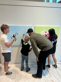 This experience was dedicated to diversity. Leche created two interactive murals for the children of Beaverton to fill in. Using pieces from a collection called Caged Fruit. The seeds represent each of us and our abilities to grow. Growth here dedicated to loving our neighbors as we love ourselves. Thank you to everyone who picked up a paint brush and helped us create and celebrate our diversity.